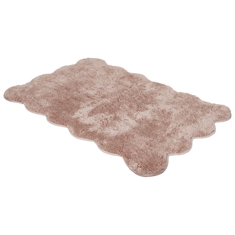 Ellen från Fondaco, mjuk och fluffig badrumsmatta med vågig kant. Mattan är underbart skön att stå på, och tack vare en baksida i TPR ligger den stadigt på golvet.