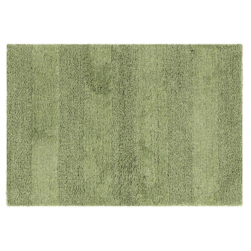 Vendela Grön från KM Carpets är en vändbar badrumsmatta i 100 % bomull. Mattan har ett mönster i high and low-teknik med breda ränder som ger en diskret men tydlig struktur i en mellangrön skogsgrön ton.
