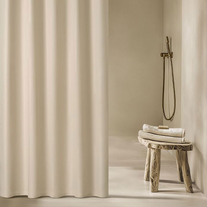 Harmony från Debel är ett duschdraperi tillverkat återvunnen polyester.