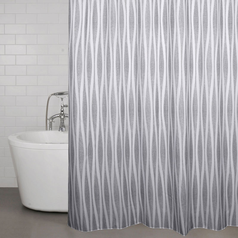 Duschdraperi med vågigt mönster från Redlunds. Inkl 12 st vita ringar för enkel upphängning. Mönster skapat av svensk designer.