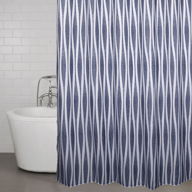 Duschdraperi med vågigt mönster från Redlunds. Inkl 12 st vita ringar för enkel upphängning. Mönster skapat av svensk designer.