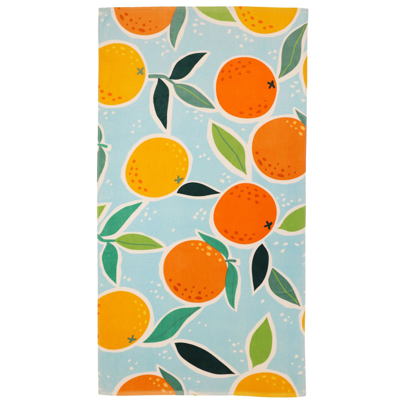 Läckert badlakan med apelsiner som bidrar till sommarkänslan!
