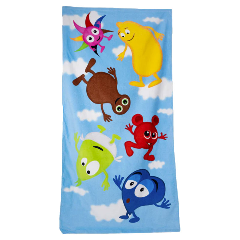 Mjuk och lekfull badhandduk med motiv av Babblarna bland molnen. Denna färgglada badhandduk är perfekt för stranden, badhuset eller hemmabruk. De blå tonerna påminner som soliga dagar och sköna badstunder.