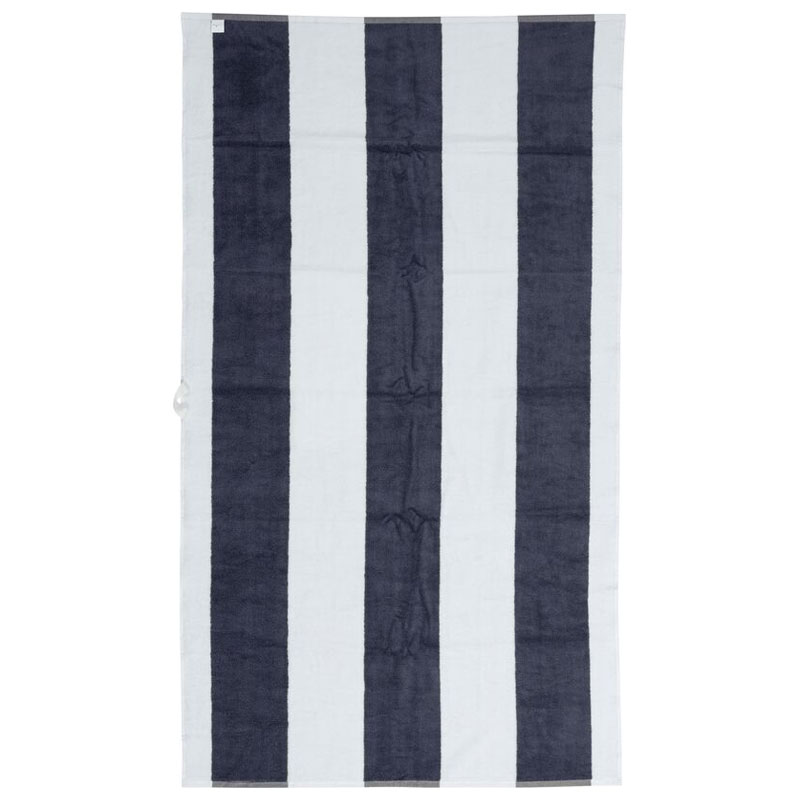 Klassisk strandhandduk i kraftig bomullsfrotté som tål sommarens alla äventyr. De breda ränderna ger en tidlös marin känsla.