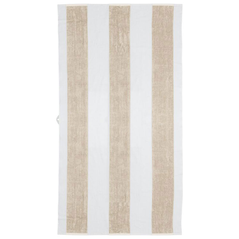 Klassisk strandhandduk i kraftig bomullsfrotté som tål sommarens alla äventyr. De breda ränderna ger en tidlös marin känsla.