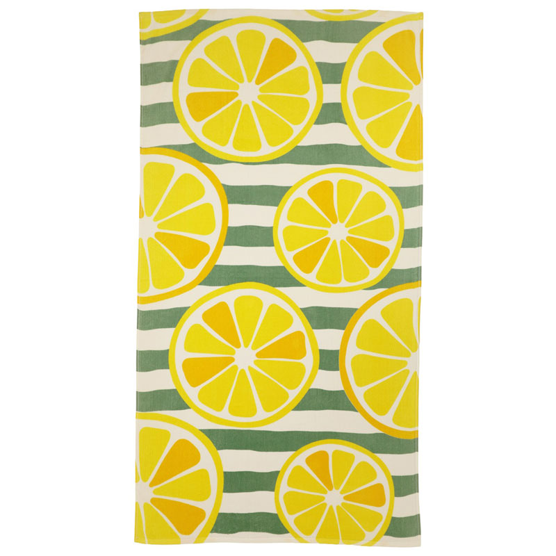 Läckert badlakan med citroner på gröna ränder som bidrar till sommarkänslan!