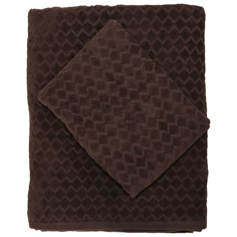 Diamond från Nina Royal, lyxig, chokladbrun handduk i velourfrotté med rutmönster.