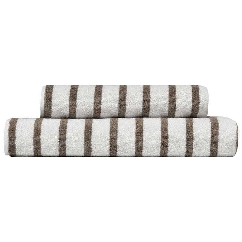 Everyday från Høie, härlig frottéhandduk i mjuk och slittålig bomullskvalité med smala ränder i beige mot en offwhite botten. Handduken har en bred hank för enkel upphängning.