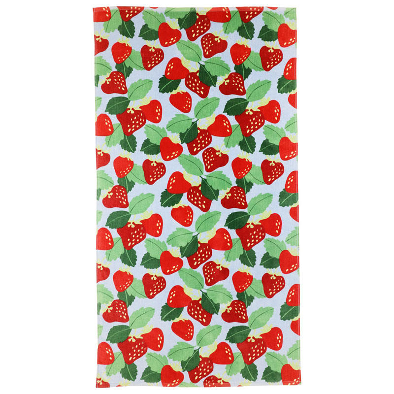 Läckert badlakan med jordgubbar som bidrar till sommarkänslan!