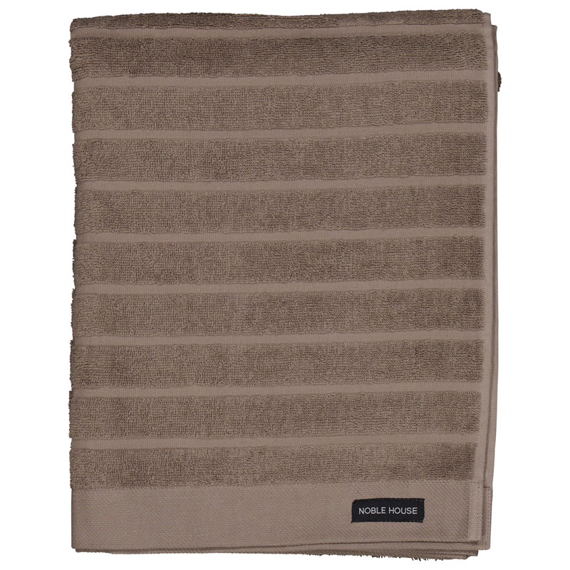 Skön mörkbeige handduk med invävda ränder som är slätare än själva frottén.