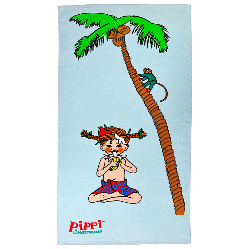 Dess ljuvliga motiv med Pippi sittandes under en palm är perfekt för strandäventyret.