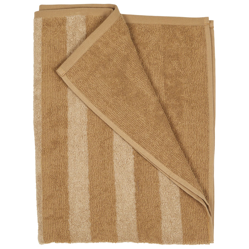 Mjuk havrefärgad frottéhandduk tillverkad av en bomull/polyester blandning, kombinationen skapar en vacker randigt effekt på framsidan vid infärgningen.