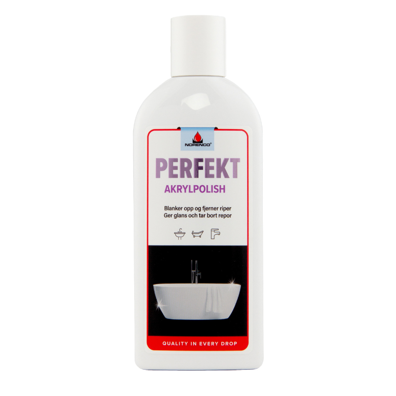 Tar även bort missfärgningar/fläckar av bla. hårfärg. Perfekt Akrylpolish kan också användas för att polera upp blandare och kranar i krom.