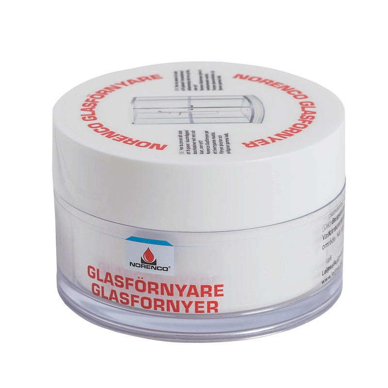 Glasförnyare Polermedel från Norenco, rengör effektivt glasytan och avlägsnar gammal kalk.