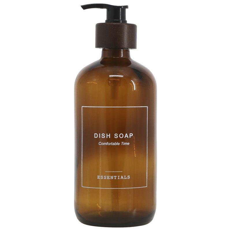 Snygg pumpflaska till diskmedel, perfekt för dig som vill skapa en stilren och harmonisk känsla i ditt badrum. Med enkel vit text mot en brun botten.