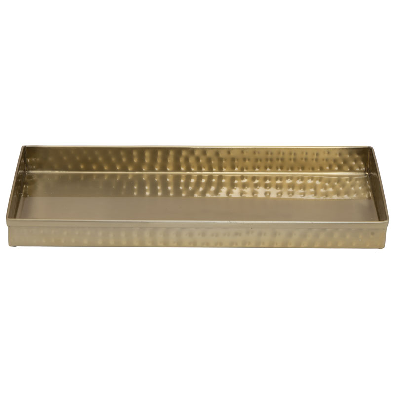 Den stilrena formen och den varma metalliska finishen gör brickan till ett blickfång i varje rum.