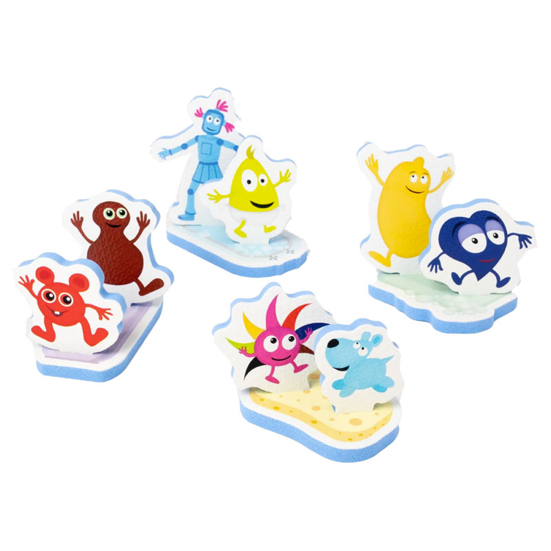 Färgglada badleksaker med motiv av Babblarna som gör badstunden till en interaktiv och rolig upplevelse. De kan fästas på badrumsväggen eller sättas ihop för att flyta på vattnet, vilket uppmuntrar till kreativ lek och utvecklar barnets motoriska färdigheter.