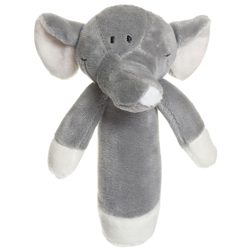 Diinglisar skallra elefant från Teddykompaniet, i fin grå nyans. En rolig leksak och en trygg vän för ditt barn, designad för att simulera barnets hörsel och motoriska utveckling.