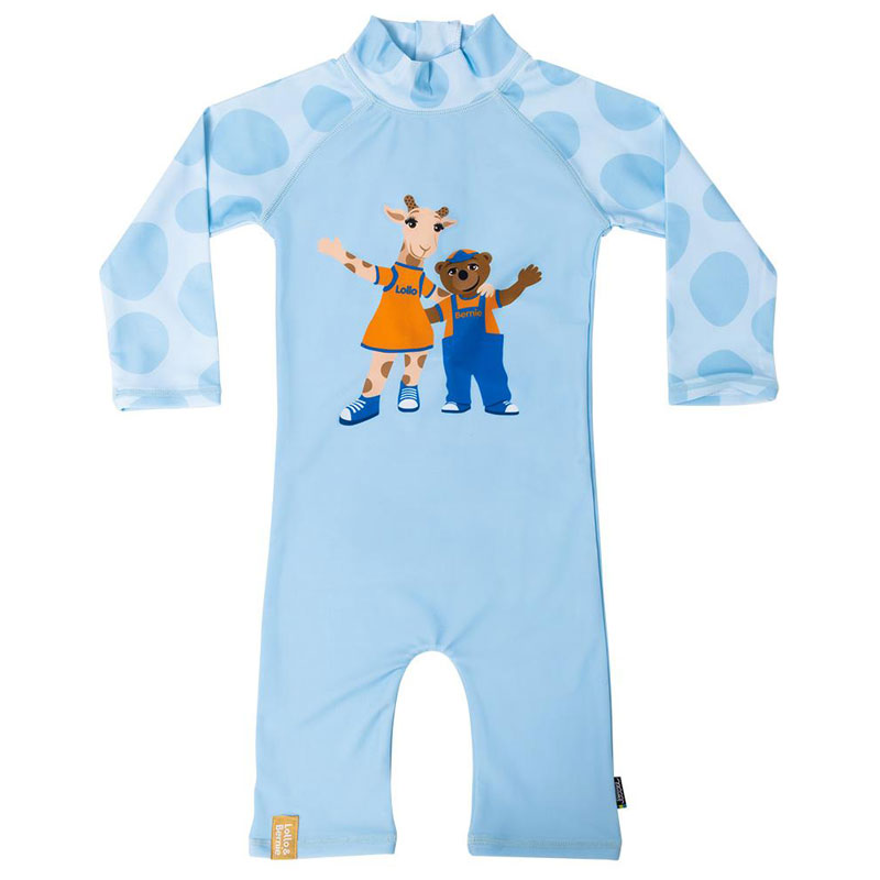 Söt uv-dräkt från Swimpy, med motiv av Lollo och Bernie mot en ljusblå botten.