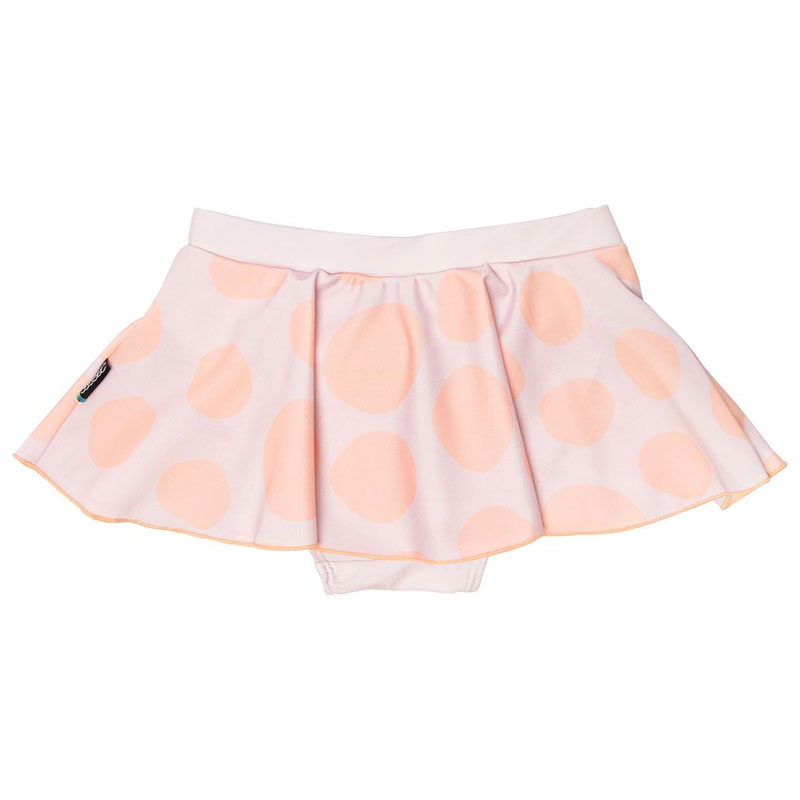 Lollo och Bernie uv-kjol från Swimpy, med ett prickigt mönster i aprikos- och ljusrosa.