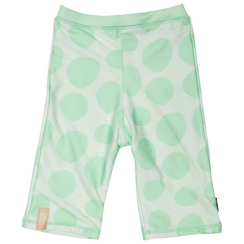 Gulliga uv-shorts från Swimpy, med ett prickigt mönster i grönt.