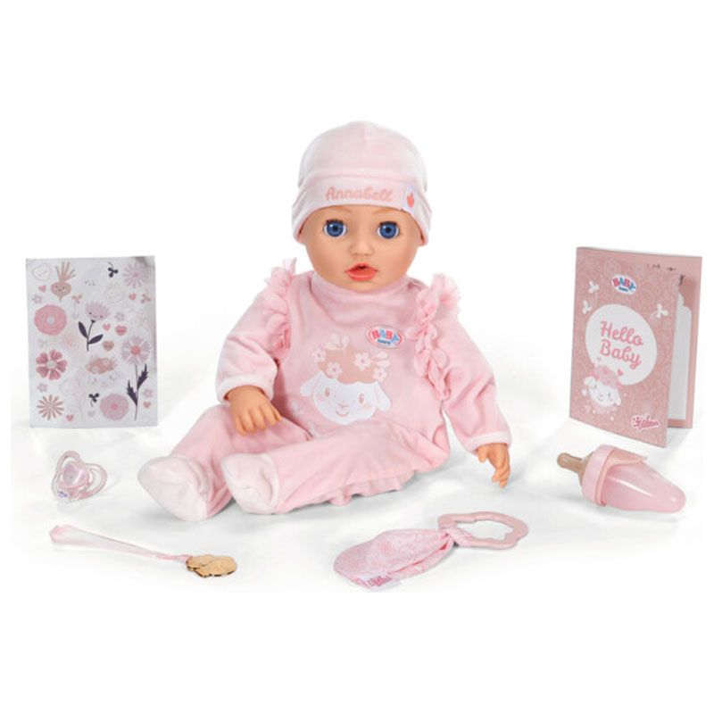 Dockan Annabell från BABY born reagerar på beröring med söta rörelser och ljud. När hon får sin flaska eller napp rör hon på mun och ögon - nästan som en riktig bebis.