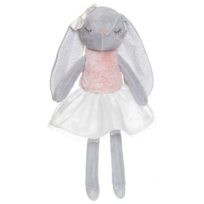 Kelly är en charmig ballerina i ljusgrå plysch, med en fluffig tyllkjol och glittrande ballerinaskor.