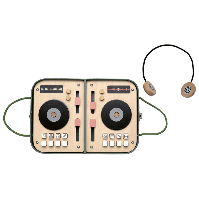 DJ Bag från Jabadabado är den perfekta leksaken för barn som älskar musik och kreativt skapande. Denna portabla DJ-väska är mer än bara en leksak – den stimulerar motorik, rytmkänsla och kreativitet genom interaktivt spel. Barnen kan vrida på rattar, trycka på knappar och snurra på skivorna, precis som en riktig DJ.