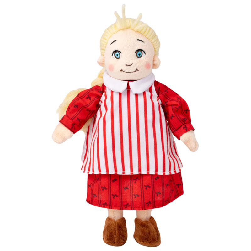 Härligt gosedjur med form av Ida, Emil i Lönnebergas snälla och nyfikna lillasyster. Iklädd sin fina röda klänning med vit- och rödrandigt förkläde och är alltid redo att följa med på äventyr.