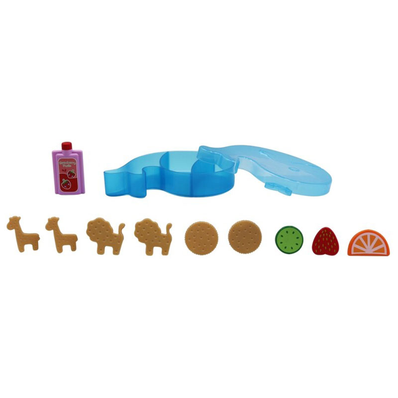 Lunchlådan innehåller 10 delar lekmat, bland annat roliga kakor i djurformer och en liten flaska. Perfekt för fantasifull lek där barnen kan duka upp, packa och servera sina dockor.