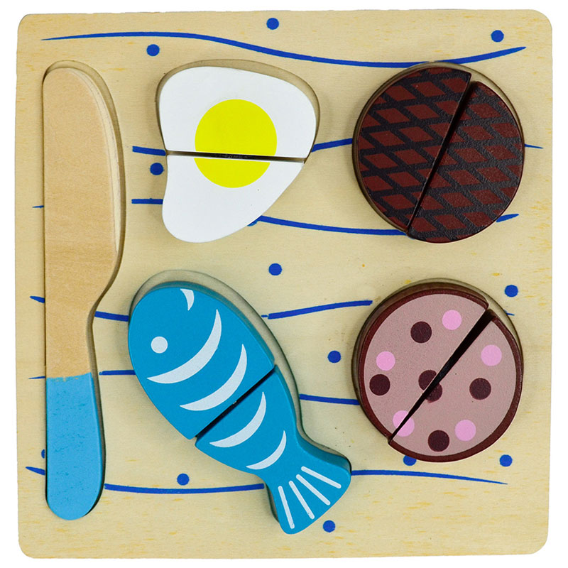 Delbar mat från Toys by Tildas. Levereras med en kniv och fyra delbara kakor som hålls samman av kardborrefästen som kan separeras och sedan sättas ihop igen.