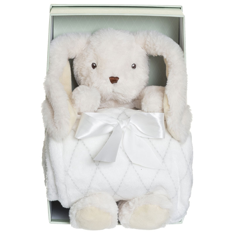 Ge en komplett och elegant present med fleecefilt och kaninen Svea från Teddykompaniet. Setet levereras i en vacker presentförpackning, vilket gör den till en färdig och genomtänkt gåva att ge bort.
