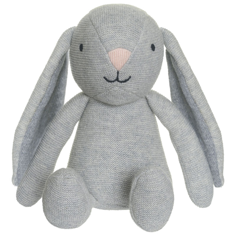 Teddy Baby är en mjuk gosedjurskanin i stickad, ekologisk bomull med vackra detaljer, vilket gör den till en perfekt första vän till ditt barn. Det sköna tyget ger den en naturlig och trygg känsla som är idealisk för mysiga stunder och lek.