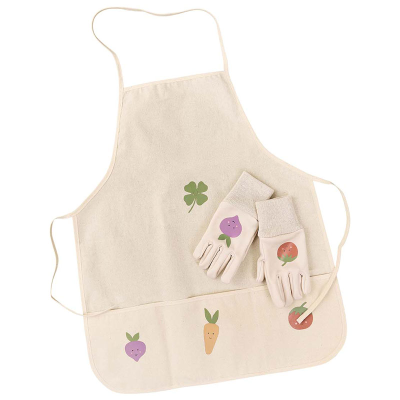 Setet består av ett förkläde tillverkat av 100% bomull och ett par trädgårdshandskar. Allt levereras i en praktisk bärväska som är lätt att ta med sig och förvara.