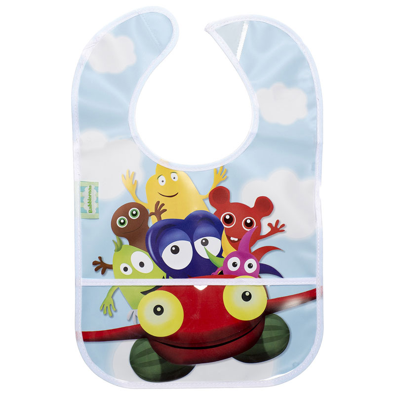 Lekfull och praktisk haklapp med motiv av Babblarna som flyger i sin bil. Skyddar kläderna från matfläckar och kladd. Perfekt för små barn som upptäcker matens värld.