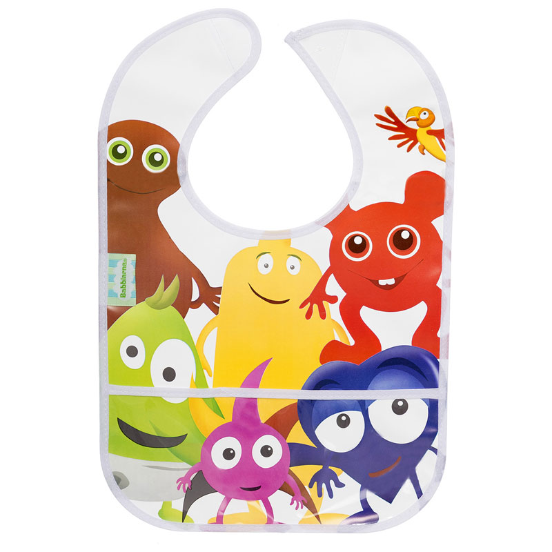 Lekfull och praktisk haklapp med motiv av Babblarna. Skyddar kläderna från matfläckar och kladd. Perfekt för små barn som upptäcker matens värld.