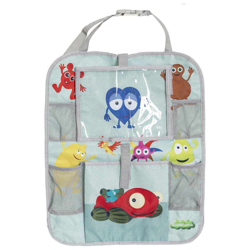 Praktiskt aktivitetsficka med Babblarna-motiv, perfekt förvaring för leksaker, böcker och andra nödvändigheter under bilfärden.