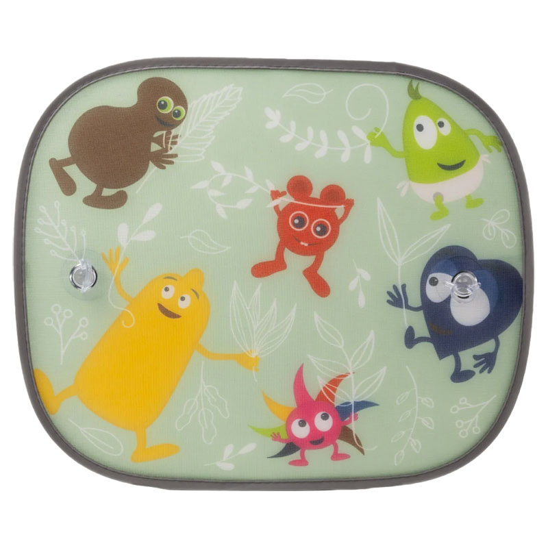 Dessa praktiska solskydd med motiv av Babblarna i naturen skyddar barnen från solens strålar och skapar en bekväm miljö i bilens baksäte.