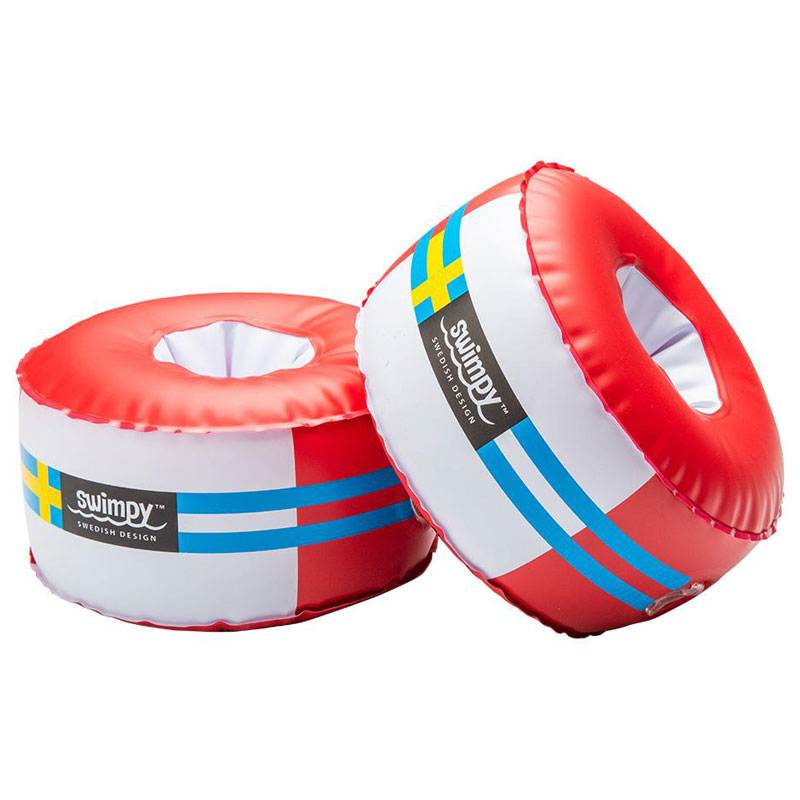 Armringar från Swimpy, ett flythjälpmedel som gör att barnet hamnar i rätt simläge i vattnet och används för att introducera barnet till simtag och hjälper till att utveckla motoriken.