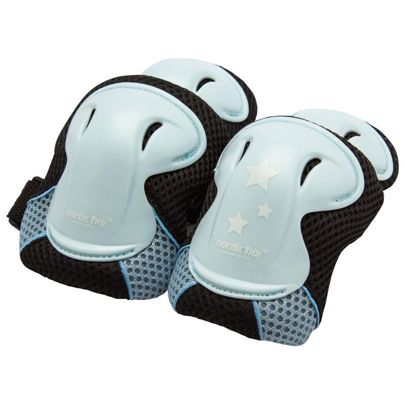 Klassiska knä- och armbågsskydd från Nordic Hoj, i en fin blå nyans med vita stjärnor.