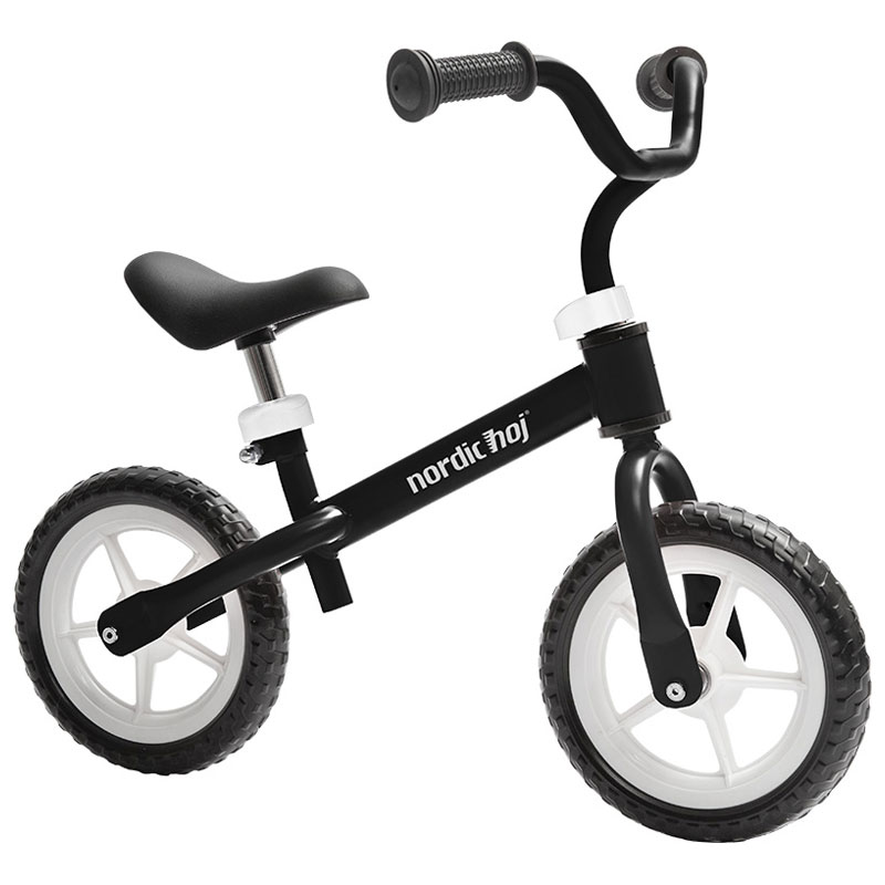 Cool 10" springcykel från Nordic Hoj, i svart med vita detaljer.