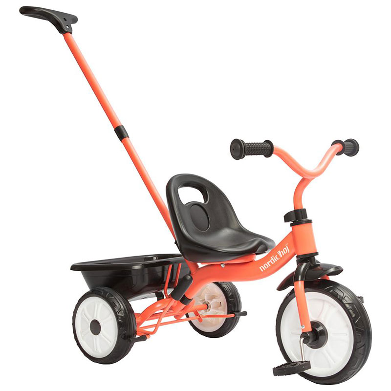 Härlig trehjuling från Nordic Hoj, i orange nyans med svarta detaljer.