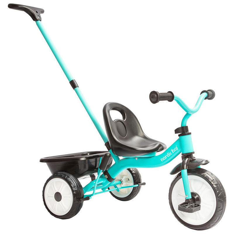 Härlig trehjuling från Nordic Hoj, i turkos nyans med svarta detaljer.