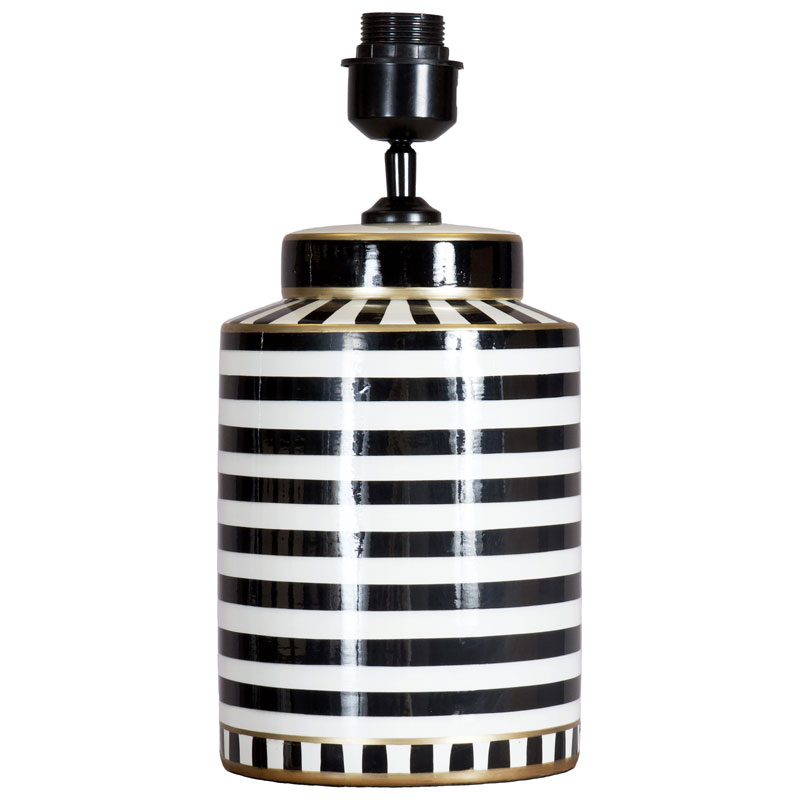 En vacker lampfot med en tidlös elegans från PR Home. Denna svartvitrandiga keramiska fot, iögonfallande med inslag av guld. Ger en djärv men ändå raffinerad art déco-känsla till alla rum.