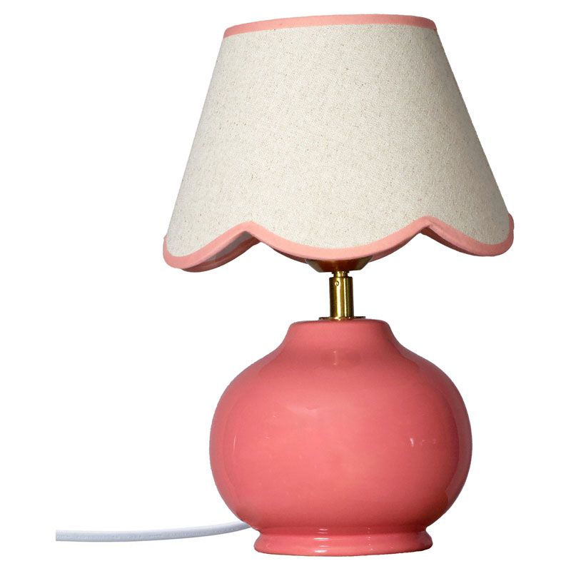 Tjusig komplett bordslampa med lampfot och matchande skärm, från PR Home. Nell har en läcker klotformad keramisk fot och en linneliknade skärm med en vågig kant.