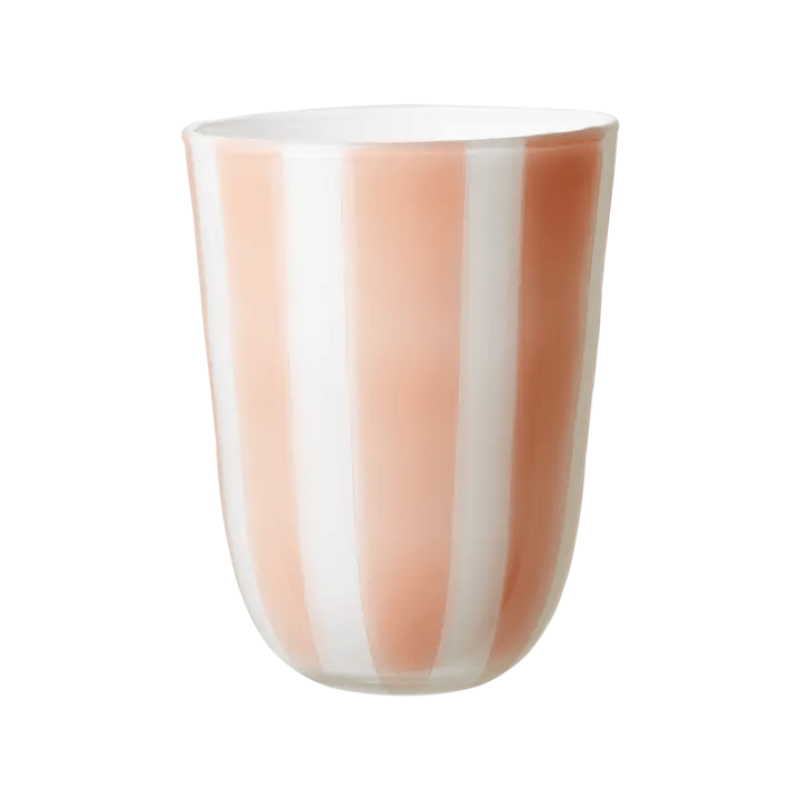 Lekfull randig värmeljushållare i rosa och vitt.