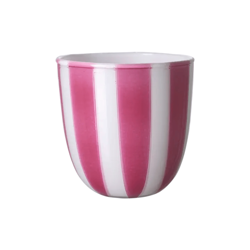 Lekfull randig värmeljushållare i rosa och vitt.