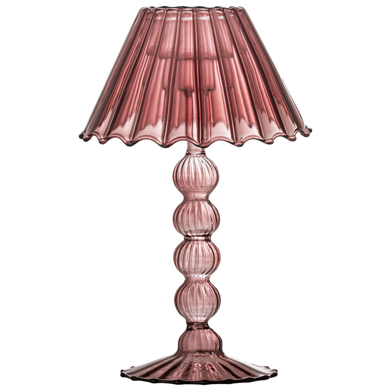 Designad för värmeljus, liknar den en liten bordslampa som ger ett mysigt, inbjudande sken.