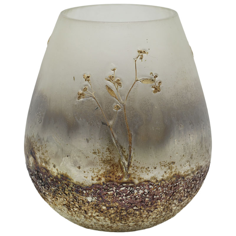 Charmig ljuslykta från Chic Antique, med en texturerad botten och frostat glas som skapar ett mjukt uttryck.