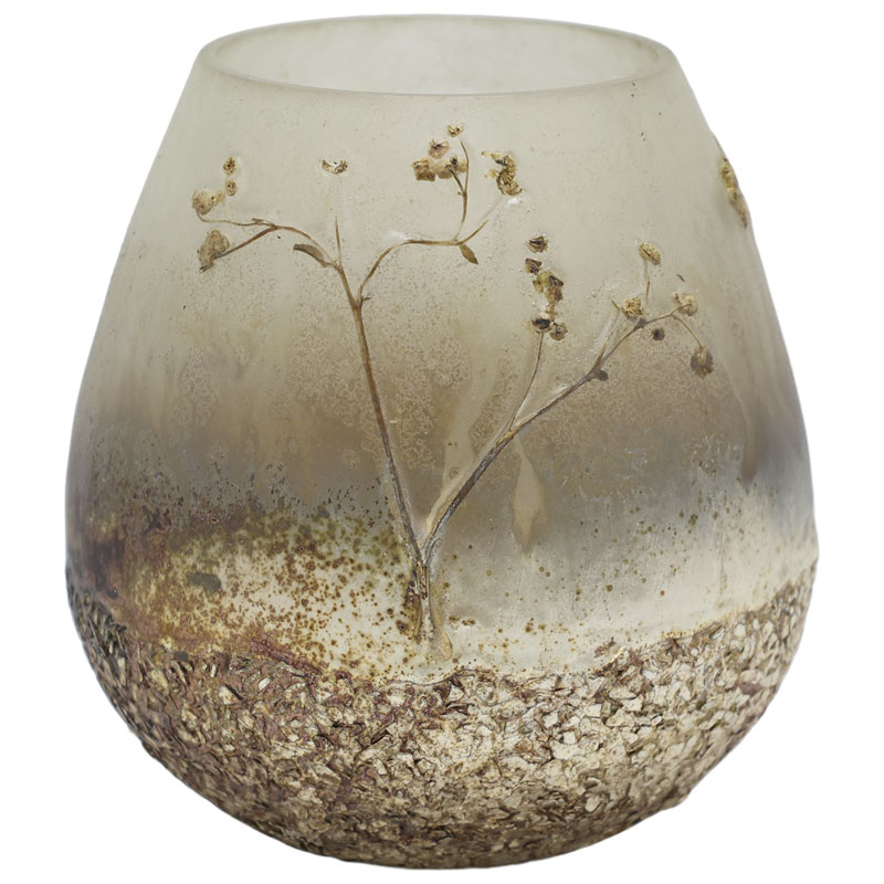 Charmig ljuslykta från Chic Antique, med en texturerad botten och frostat glas som skapar ett mjukt uttryck.